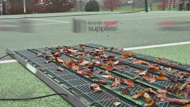 No more frustrating raking, sweeping, vacuuming or blowing leaves and debris around your court. The debris gets trapped on the barbed surface of the mat. It can then be shaken off after the court surface has been swept.