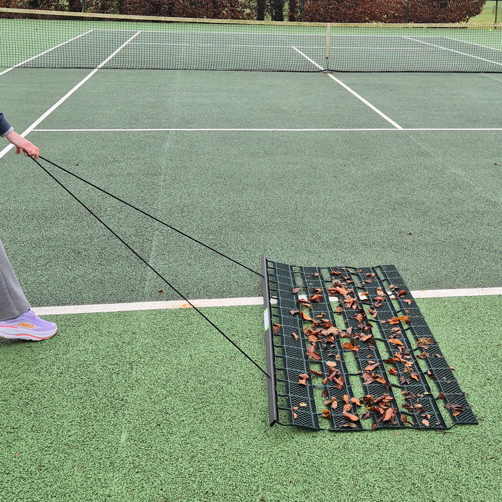 Sweeping your tennis court is super quick and efficient with this drag mat. It collects leaves, pine needles, sticks, stones, and seed pods etc in minutes!